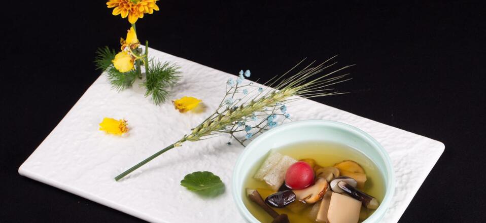 “垂虹素宴”被评为“江苏名宴,在于严格遵循自然规律,不时不食。选材极为考究,一切味道都源于素食本身。通过大厨们的精耕细作,用独特的审美和想象力制作出一道道色香味俱全的极品素宴,分为春夏秋冬四季版。
